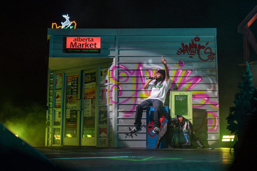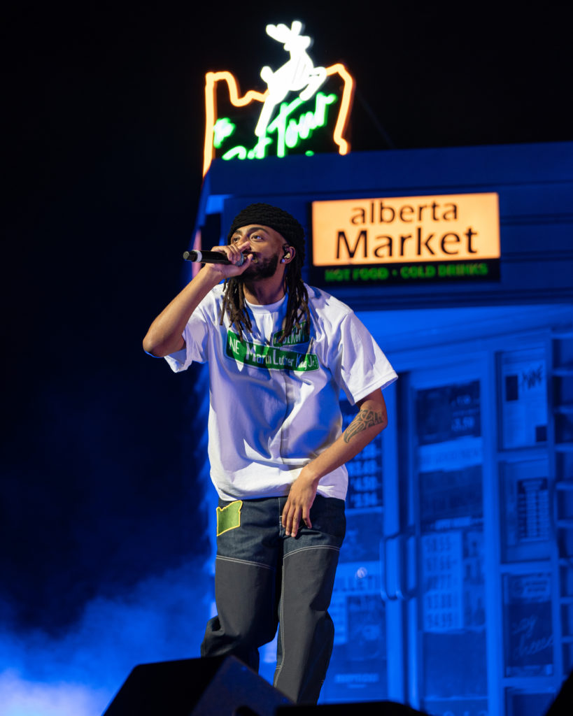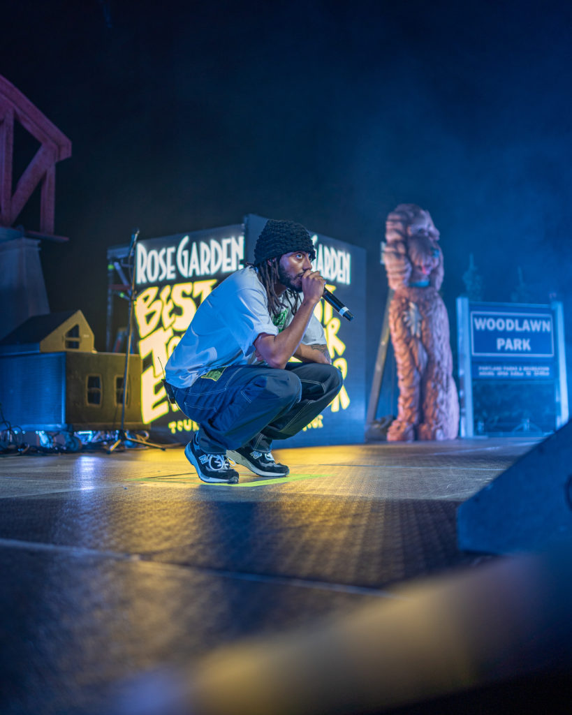 Opening the show were a selection of other Portlanders, including Blazers DJ OG One, Niro Gotti, Heff, and Mic Capes, accompanied by producer and DJ Drae Slapz. Capes’s set culminated in a high energy performance of his St. Johns anthem “Jumper Cables,” which had the rapidly filling crowd on their feet. Cousin Stizz followed Capes with a short but equally hype set, including “No Bells” and “Fresh Prince,” setting the stage for the man the people had come to see.