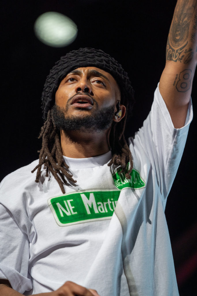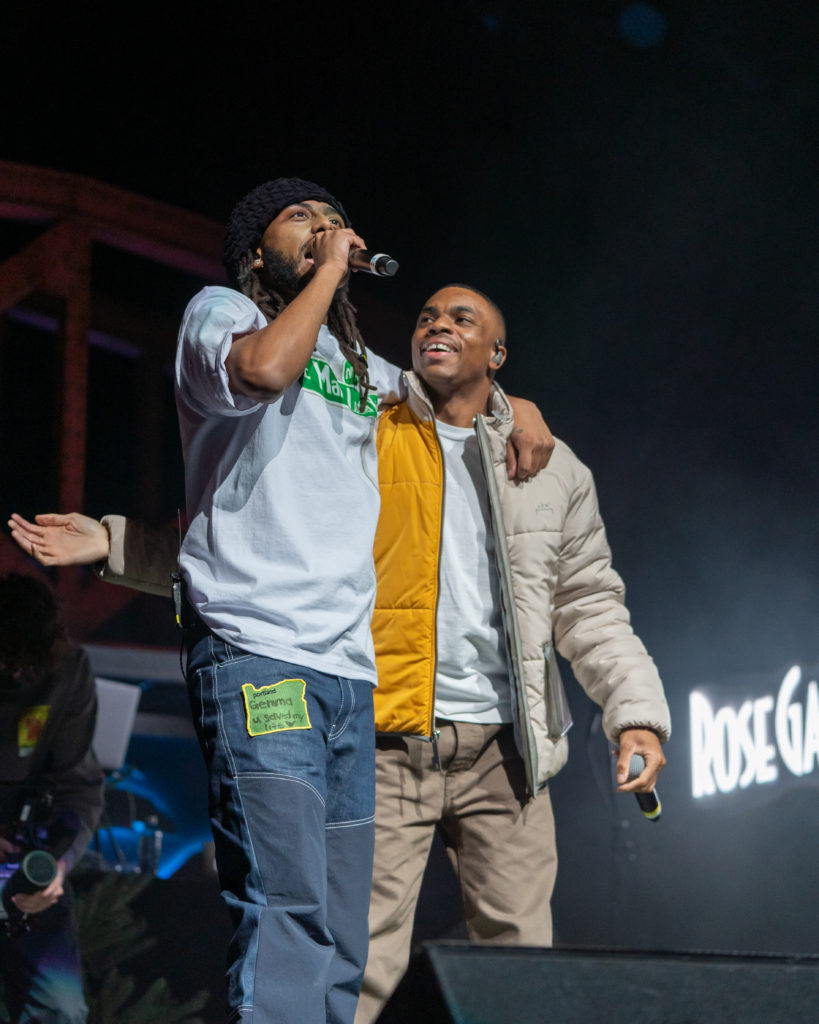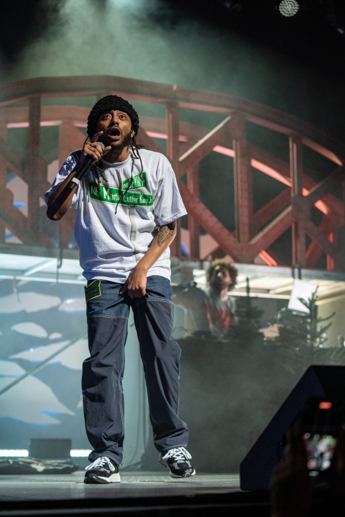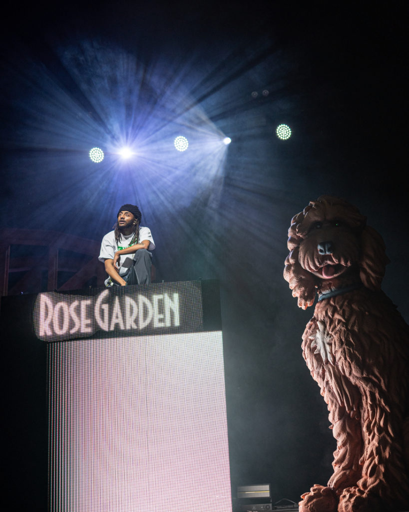 Further highlights included a heartfelt version of “Dr. Whoever,” which Amine performed sitting on the bridge behind Madison, his longtime DJ. After the slow number, Amine came back down and brought the crowd up for “Pressure in my Palms,” which reached a fever pitch thanks to a surprise appearance from Vince Staples, who followed his feature verse with a performance of “ARE YOU WITH THAT?” from his self-titled album, released last year. The set was loaded on the front end with a mix of tracks from Limbo and TWOPOINTFIVE, but Amine paid homage to his earlier hits, including “Red Mercedes,” “Spice Girl,” and a stripped-down version of his breakout single “Caroline,” which was a sing-along with the whole crowd. “I made this shit in a classroom at PSU!” he announced as the opening stabs of the beat began to play. “I made this shit when my bank account was on overdraft fees!”