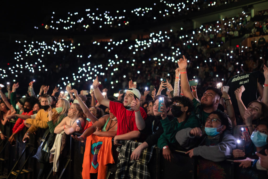 To his credit, Amine draws perhaps the most diverse crowd in town–the audience encompassed a wide swathe of Portlanders all there to witness the ascension of a singular artist who, in one way or another, speaks for them. After a performance of the throwback “Heebiejeebies,” from his 2017 debut Good for You, Amine stopped the music to announce that he was bringing back his tradition of “tour pants”– a pair of jeans with a patch added for each venue he plays, signed by a fan from the the crowd. “For this tour in 2022, we’re bringing back the motherfuckin tour pants! For this shit right here, we always put on a new patch for every city, and tonight we got Oregon right motherfuckin here, Portland to be exact!” Amine brought up a young woman named Gemma, who presented him a hat that her wife threw up to the stage. “I want you to write your name,” he told her, “and then I want you to write something that you want me to know personally about yourself, that you don’t want anyone else in this crowd to know. This is just between you and me, your dreams, whatever it might be.”