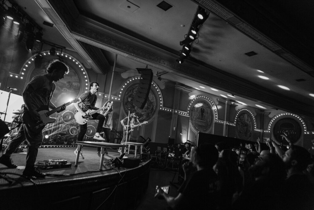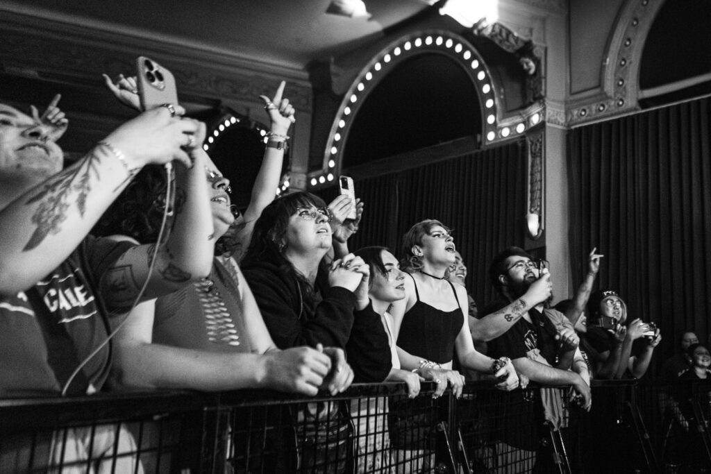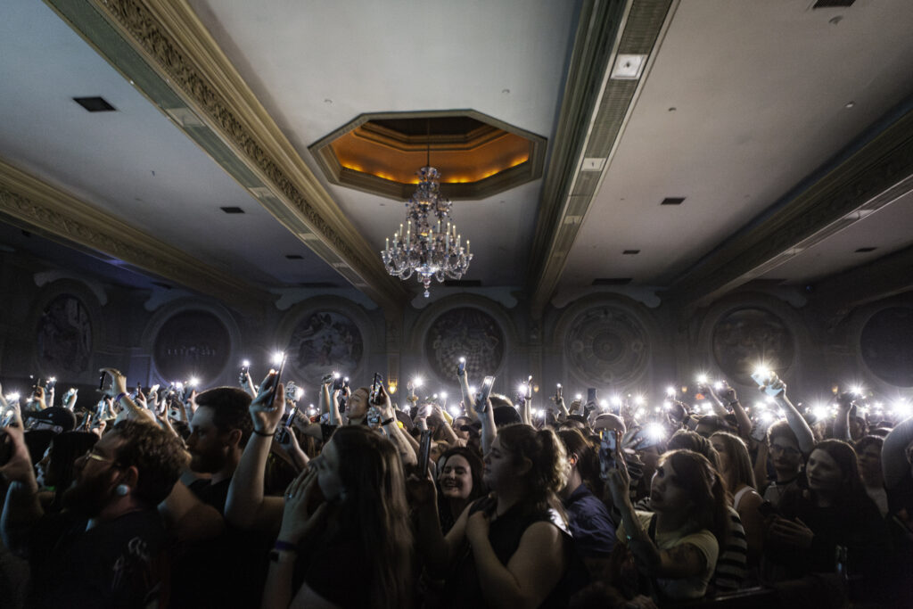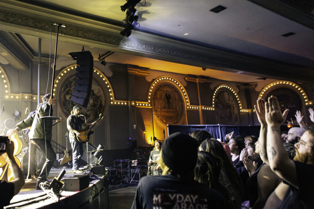 Confetti blasted over us as we sang the lyrics to the pinnacle pop punk anthem from 2006, “Jamie All Over”. Beside me a mother stood with her daughter, who was probably about the same age I was when the song was first released. Hands outstretched, they reached for the confetti as they sang together. The final wave of crowd surfers made their way to the front, obscured by the confetti. The Crystal Ballroom was packed with both old and new fans — a multi-generational crowd of 1,500 people — for Mayday Parade’s 20 year anniversary tour date in Portland on May 9, 2025.