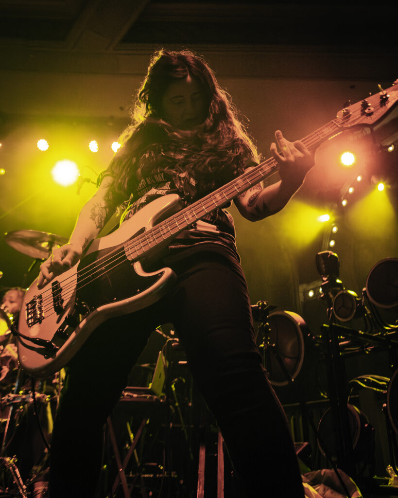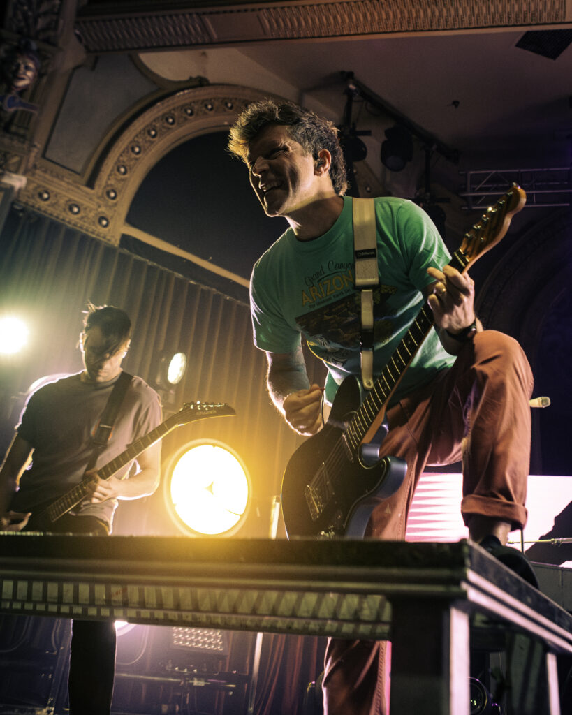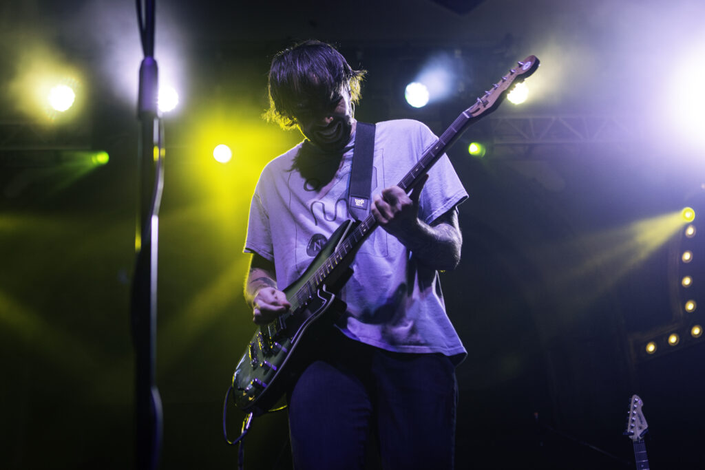 I wouldn’t be surprised to see any of the supporting bands on their own 20-year anniversary headliner some years down the road, either. Like Roses, a femme-led emo band from California, opened the evening with their raw poignant energy, hair flying and backlit from the stage lights. Portland also had the pleasure of seeing a familiar face — rocking out on drums with them was Portland’s own Dominic Jones (of the local pop punk band All Hype).