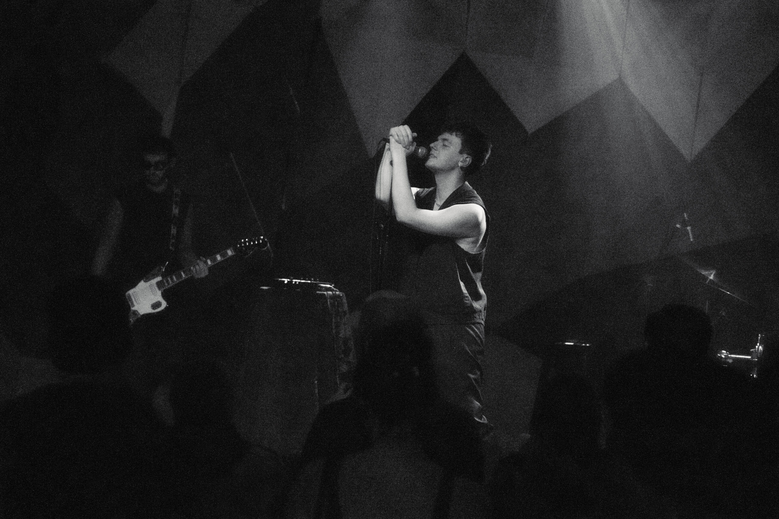 Chalk, the Belfast-based trio, stopped at Holocene this past weekend. The band consists of Ross Cullen on vocals, Benedict Goddard on guitar and synth, and Luke Niblock on drums. They are headlining their first U.S. tour after a successful run in Europe, and we were lucky enough to catch them on their second stop.