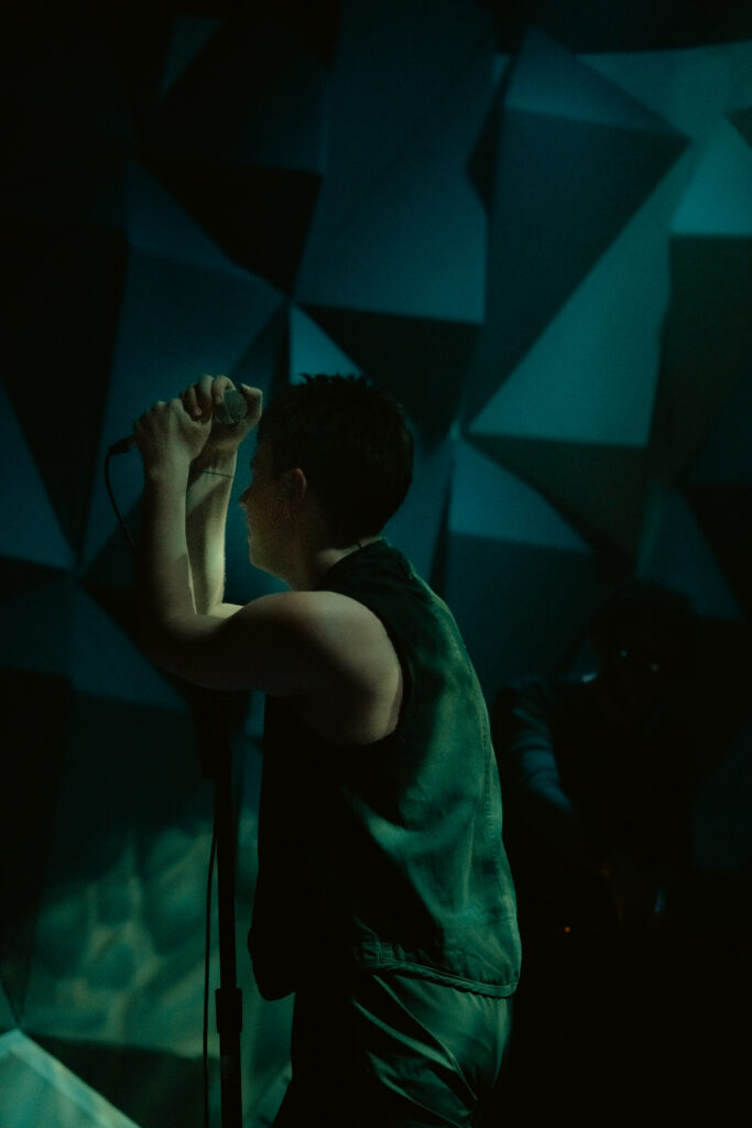 Blending genres like techno and punk, this set was both emotionally charged and energetic. Lead singer Ross Cullen has an emotional depth in his vocals that is truly impressive. Cullen delivers the lyrics with striking vulnerability, shifting his voice between restraint and intensity to create a very human sound. Drummer Luke Niblock balances raw power with precision, while guitarist Benedict Goddard adds undeniable charisma to the band’s presence. Their music commands the dance floor, and their lyrics evoke raw emotion from the crowd.