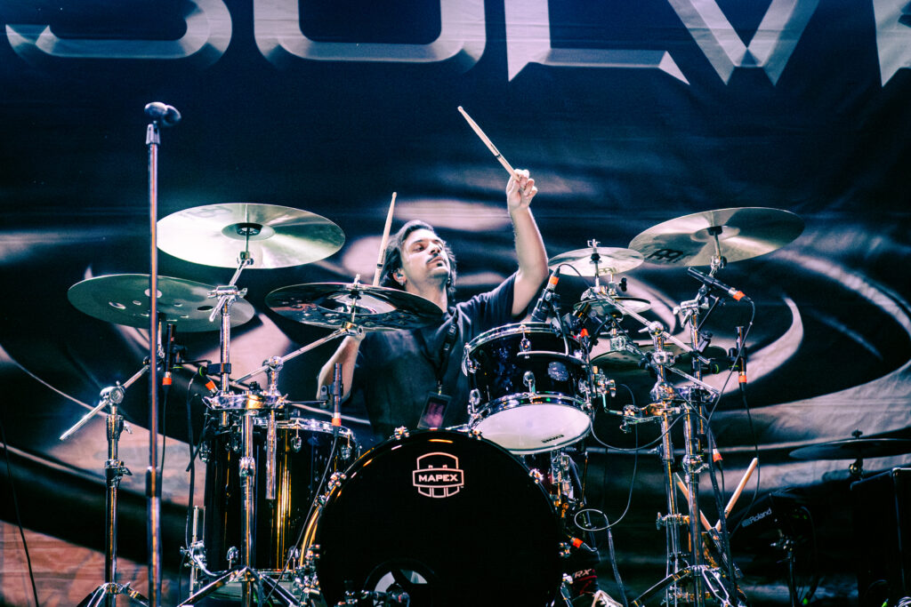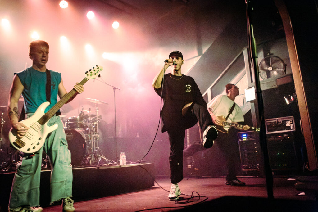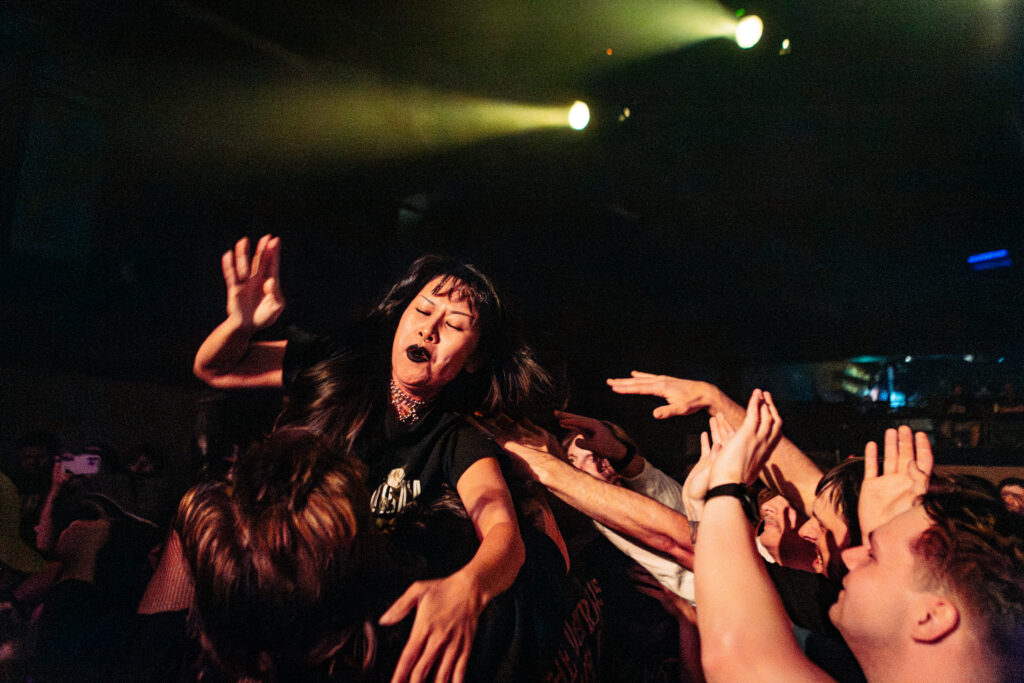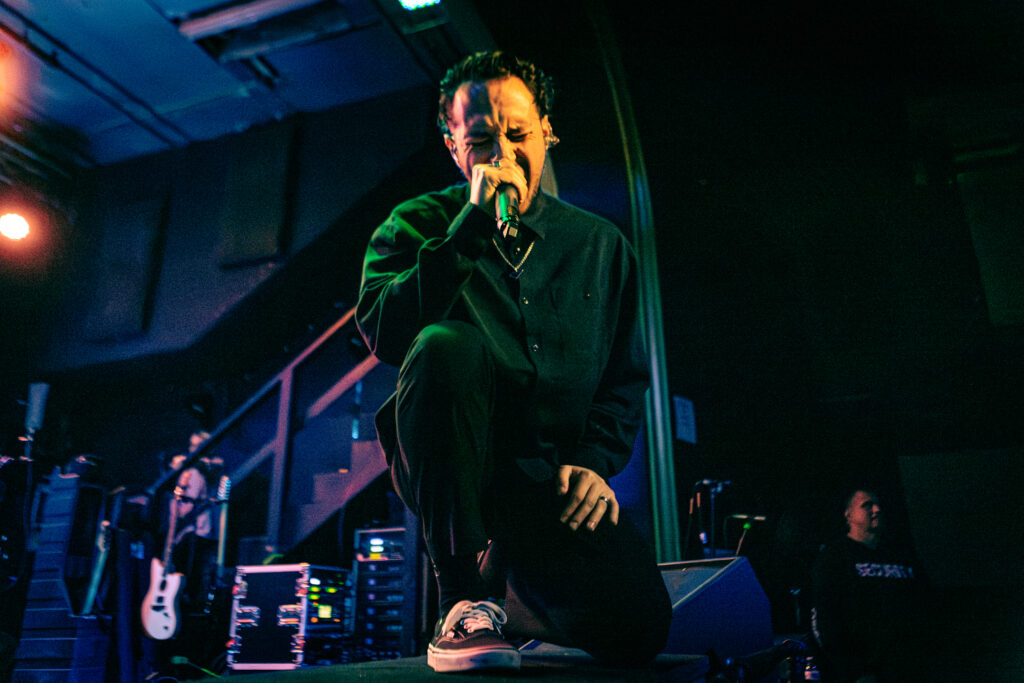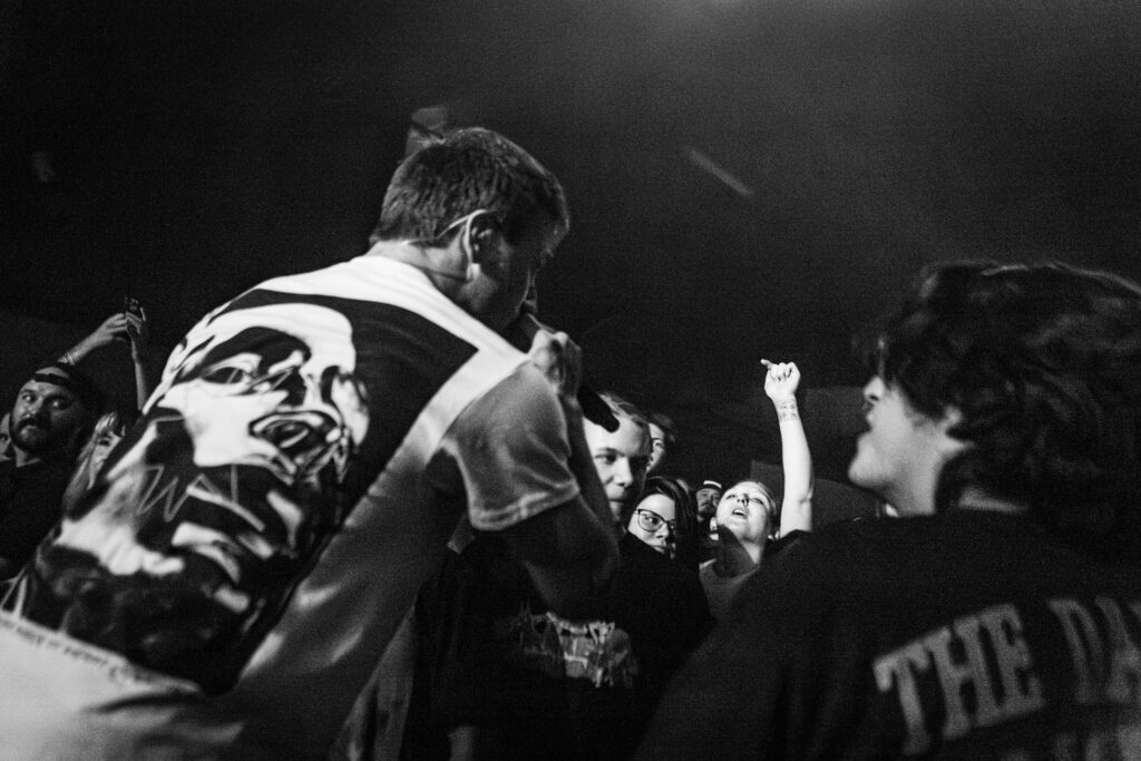 LANDMVRKS entered the stage after Silly Goose with the high energy anthem “Creature”, the second track from their latest album, The Darkest Place I’ve Ever Been. They followed that with “Death” from 2021’s Lost In The Waves. Prior to their third song, “Blistering” from their 2018 album Fantasy, vocalist Salfati called for crowd surfers and was not disappointed. The flow of bodies throughout ”Blistering” was endless, so much so that two extra security ran to the front to lend a helping hand. There wasn’t much of a break in the surfing the rest of the night, either, other than maybe during the just-over-a-minute rap-heavy beat “Sombre 16” and the stripped down intro to “Suffocate”, which Salfati played solo on stage before being joined by the rest of the band after the first chorus.