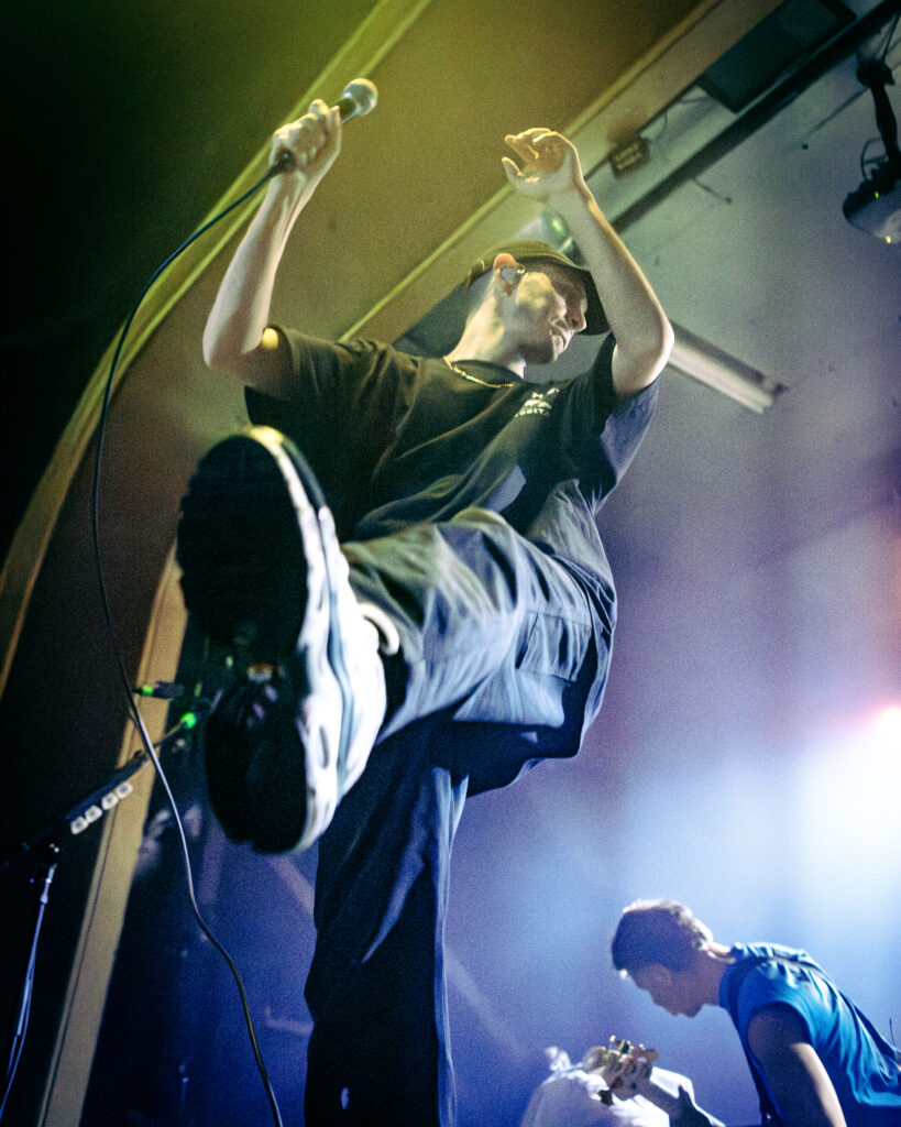 Silly Goose says their name is what they’re about and their performance proved just that. They’re “all about having fun” and really are just a bunch of silly geese. In silly goose fashion, Foster made headlines earlier this year after being arrested on a trespassing charge while performing a pop-up show at a gas station parking lot after their Lollapalooza set. The shirts with his mugshot from that arrest with “FREE SILLY GOOSE” on back were proudly displayed for sale at their merch booth at the show. During their set, Foster went out into the crowd a handful of times and danced around on stage like, you guessed it, a silly goose. His jumps, however, were more in line with that of a monkey.