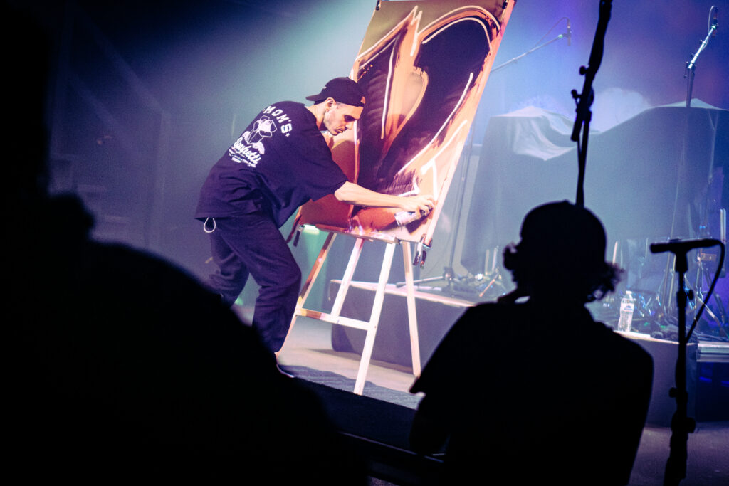 After ending their official set with “Rainfall” from Lost In The Waves, Salfati returned to the stage with a can of spray paint and canvas propped on an easel, where he spray painted the LANDMVRKS “V” emblem, graffiti-style and signed it. The band returned to the stage afterward for the encore, which consisted of “Blood Red” and “Requiem” from The Darkest Place I’ve Ever Been. This tour was the first time the latter was ever played live, according to Salfati. LANDMVRKS ended their first headline show in Portland with “Self-Made Black Hole”, bringing Resolve’s vocalist Anthony Diliberto on stage to sing with Salfati. The song featured vocals from Diliberto on the deluxe version of Lost In The Waves. Salfati put a hand on Diliberto’s shoulder as they sang and screamed together and the connection between the two friends could be felt in the room. LANDMVRKS’ decision to bring his fellow French colleagues on his US headliner was clearly intentional, and Resolve’s place on the bill for their first US tour was well-deserved. The addition of Diliberto on vocals for the final song made for a powerful ending to the evening.