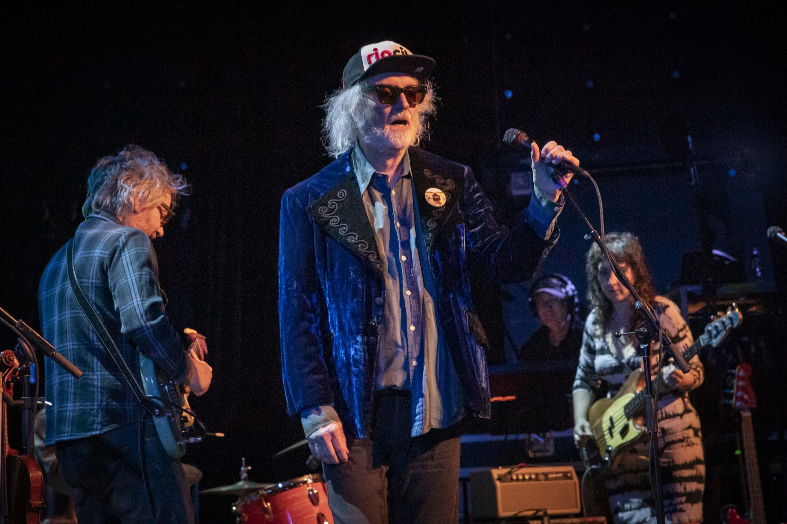 More than twenty years later, I came to see the first of Jeff Tweedy’s, (Wilco’s frontman and primary songwriter) two sold out shows at Revolution Hall. These performances showcase Tweedy’s latest solo release, 2025’s triple album Twilight Override. The band includes Tweedy’s sons Spencer (drums) and Sammy (vocals/synths/guitar) and long time friends. For example, Liam Kazar, who opened the show with 70s inspired folk tunes, played bass and guitar. Similarly, Sima Cunningham (bass/vocals), and Macie Stewart (violin/keys/vocals) rounded out the rhythm section and added subtle string textures throughout raucous the twenty-five song set.