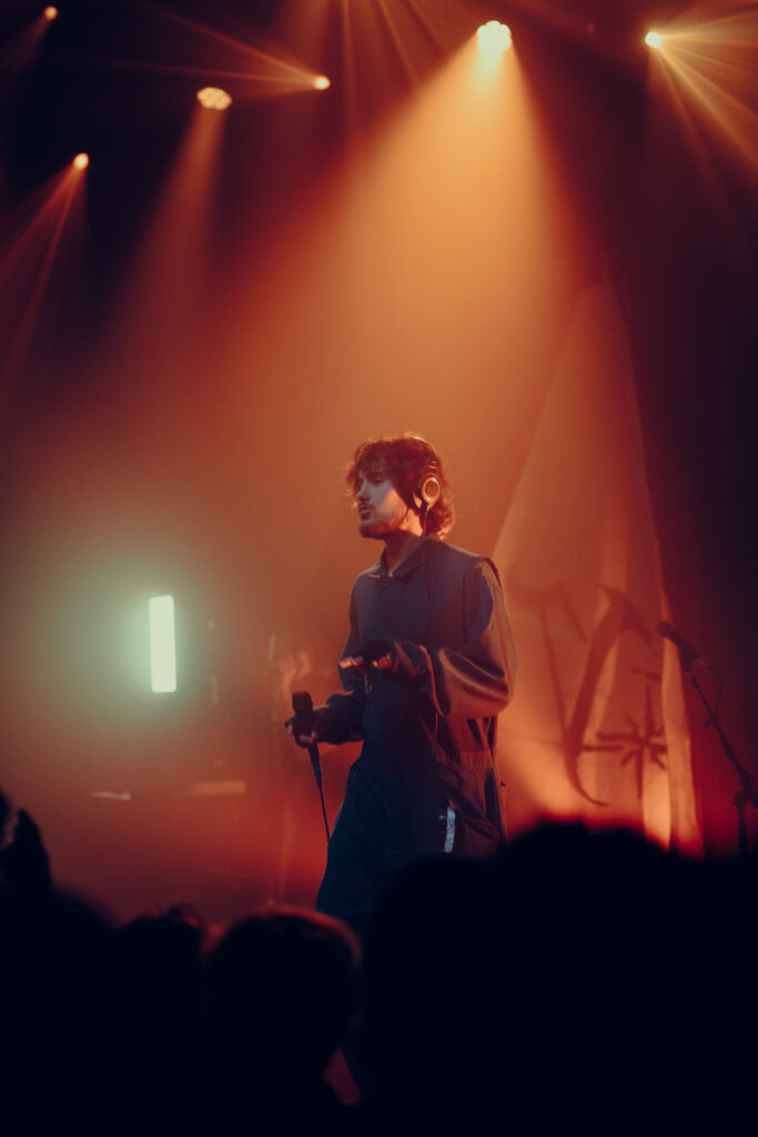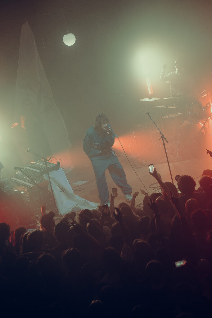 Quadeca’s set began with a cinematic build-up that embraced the nautical aesthetic of his album Vanisher, Horizon Scraper, exploring themes of self-discovery and the journey through life. The first song, “No Questions Asked”, opened with Quadeca raising a sail on stage, which set the tone perfectly. “GodStained,” one of the most popular songs off the LP, was one of the first few songs of the album to immediately pull my full attention. People sang in unison during the chorus and synergy filled the room. The energy of the concert shifted significantly from melancholic acoustics like “That’s Why” to Quadeca’s experimental rap, such as “Sisyphus” and “Thundrrr” which sparked intense mosh pits. The concert itself felt like watching a live performance of the full album movie, with Quadeca taking us on an adventure, setting the sail, and traveling through the unknown.