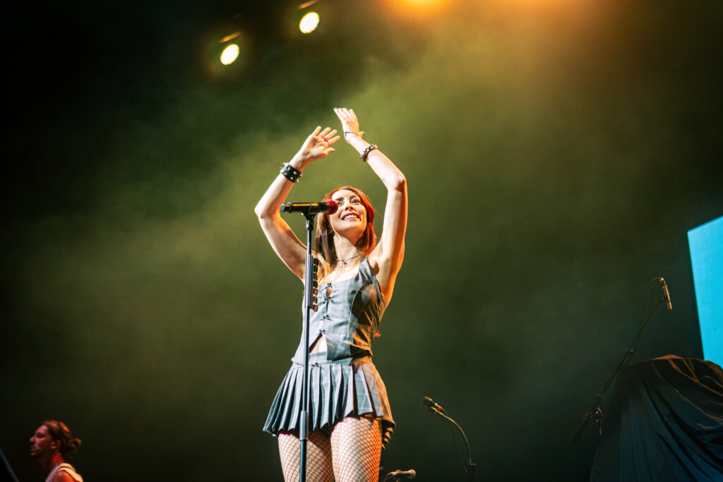LØLØ was the fresher face of the line-up, opening the evening for the more established artists, but brought a similar pop punk energy, though more femme-coded, as the headliner. The singer-songwriter has enjoyed recent success after the release of her debut album last year, falling for robots & wishing I was one. From that album she opened her set with “faceplant” and followed with “2 of us” before going into her new single “the devil wears converse”, a catchy and relatable anthem poking fun at the singers “type” and the stereotype of males in the pop punk scene.