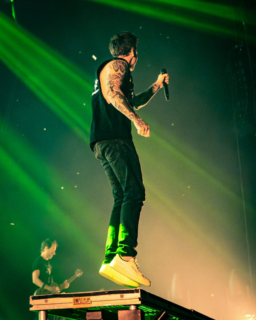 Vocalist and bassist Pierre Bouvier invited fans to the stage who dressed up for their song “What’s New Scooby Doo?” and was joined by fans in Scooby costumes dancing around him for the well-known cartoon theme song. Scooby Doos could later be seen crowd surfing during “Where I Belong”, the song Simple Plan wrote with State Champs, the final song before the band returned for their encore. At the end of the evening, Simple Plan had the crowd of “just kids” from different generations singing “I’m Just A Kid” before crying their eyes out to “Perfect”, the song written for every kid that feels like they didn’t live up to their parents’ expectations.