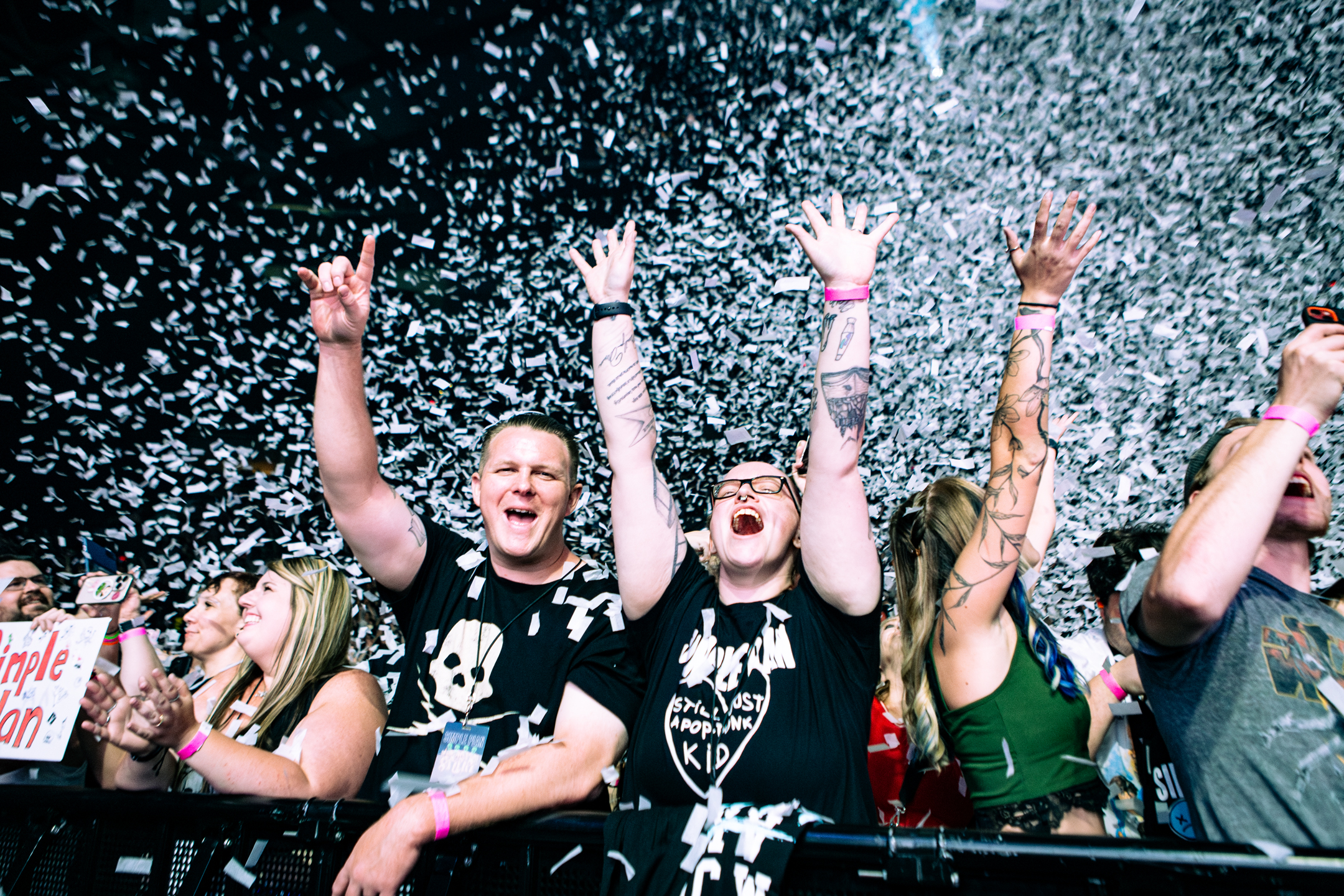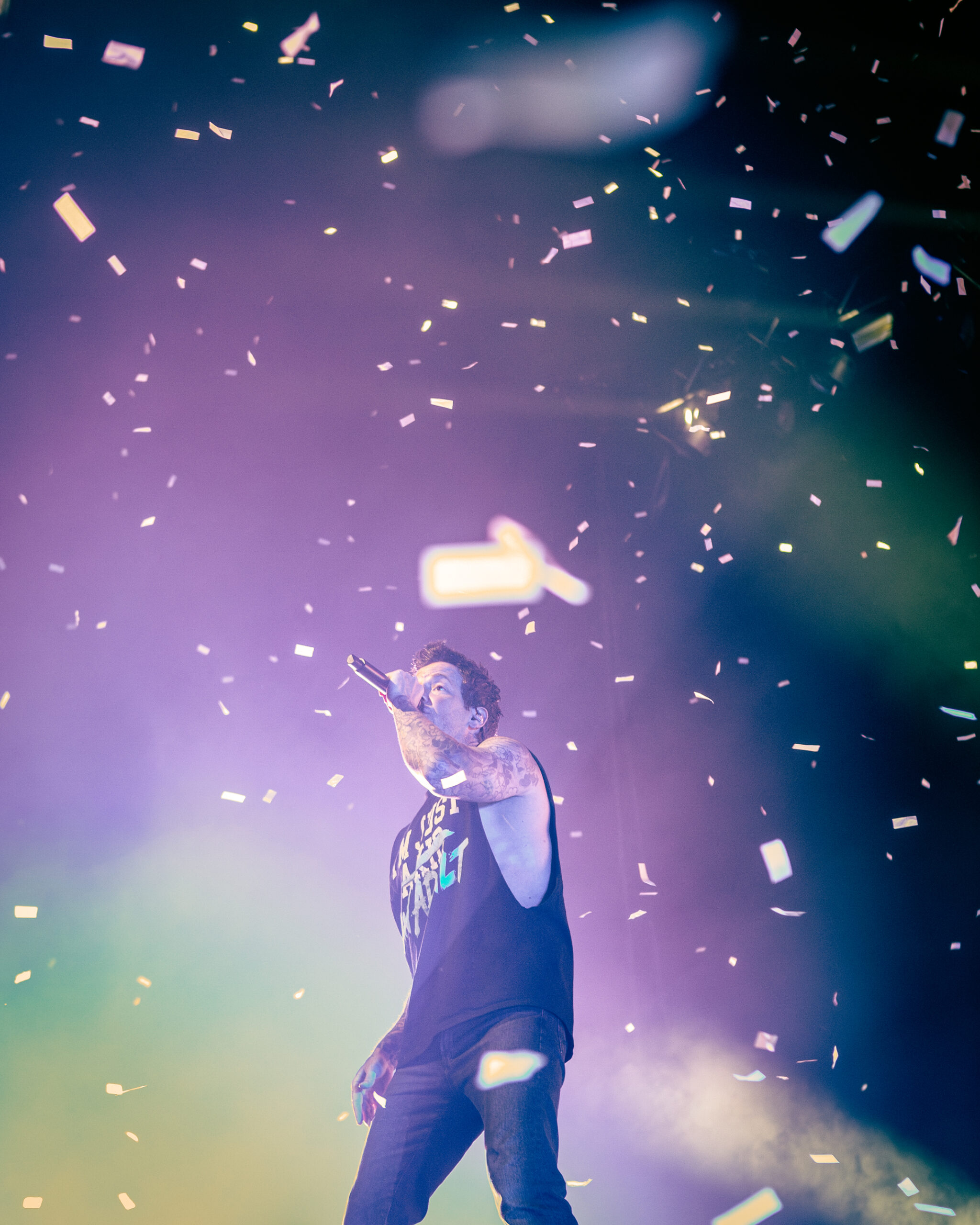 Vocalist and bassist Pierre Bouvier invited fans to the stage who dressed up for their song “What’s New Scooby Doo?” and was joined by fans in Scooby costumes dancing around him for the well-known cartoon theme song. Scooby Doos could later be seen crowd surfing during “Where I Belong”, the song Simple Plan wrote with State Champs, the final song before the band returned for their encore. At the end of the evening, Simple Plan had the crowd of “just kids” from different generations singing “I’m Just A Kid” before crying their eyes out to “Perfect”, the song written for every kid that feels like they didn’t live up to their parents’ expectations.