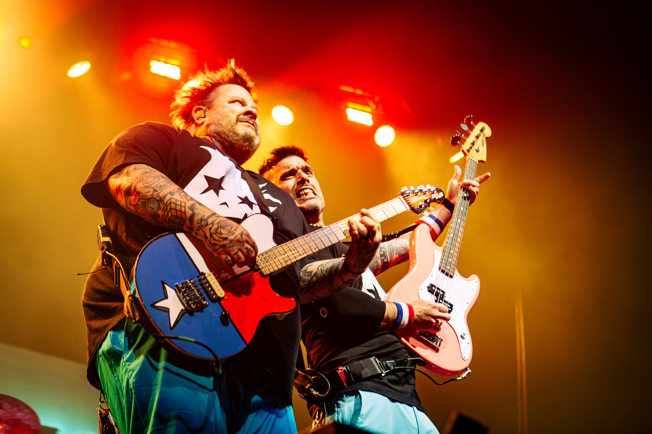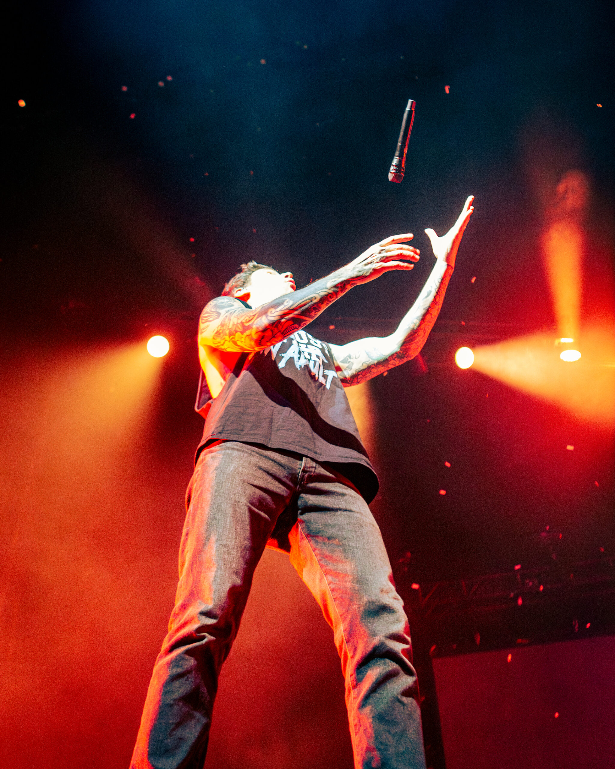 Bowling For Soup also brought the kid-like energy that primed the crowd well for Simple Plan’s performance, with vocalist and guitarist Jaret Reddick and bassist Rob Felicetti cracking jokes with one another and playfully bantering on stage. Reddick joked during the show “This is the second show of the tour and so far it’s in the top two,” but then went on to add “Actually you’re top cause there’s so many of you,” alluding to the Portland show being sold out. Felicetti’s stage antics included playing the bass between his bandmate’s legs and making faces at the crowd.