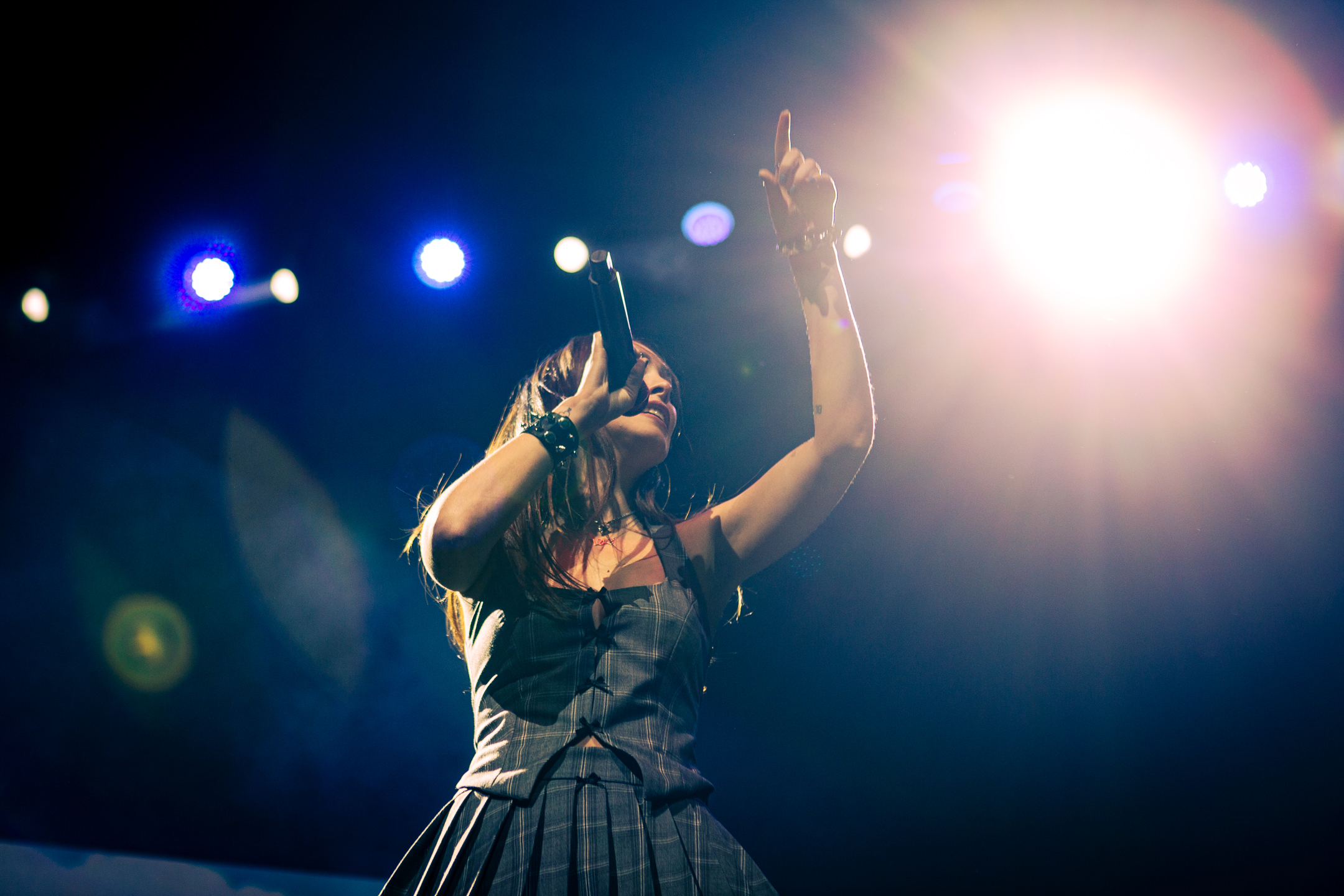LØLØ was the fresher face of the line-up, opening the evening for the more established artists, but brought a similar pop punk energy, though more femme-coded, as the headliner. The singer-songwriter has enjoyed recent success after the release of her debut album last year, falling for robots & wishing I was one. From that album she opened her set with “faceplant” and followed with “2 of us” before going into her new single “the devil wears converse”, a catchy and relatable anthem poking fun at the singers “type” and the stereotype of males in the pop punk scene.