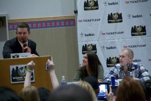 Next up was Bruce Campbell from Army of Darkness, the Evil Dead movies, and most recently Burn Notice. This guy was awesome, he didn’t even sit for the panel and had them remove the table and chairs from the stage. Campbell asked us to tell him what makes Portland so weird and asked the weirdos to stand up and tell him what made them so weird. No one really came up with anything, but one guy came up to show off his Bruce Campbell autograph tattoo on his ankle. We also got a sneak peek of the new Evil Dead movie, which won’t be the same as the cult classic but still looked pretty great.